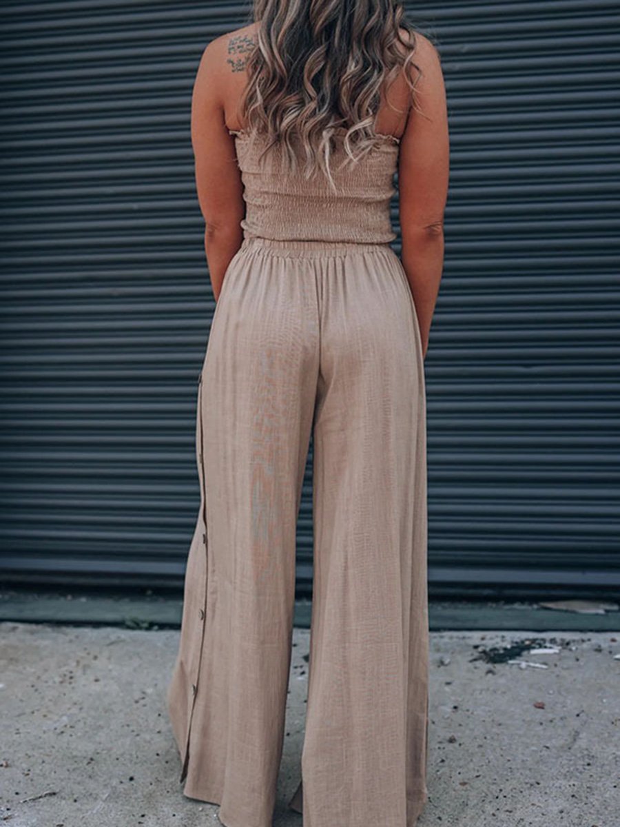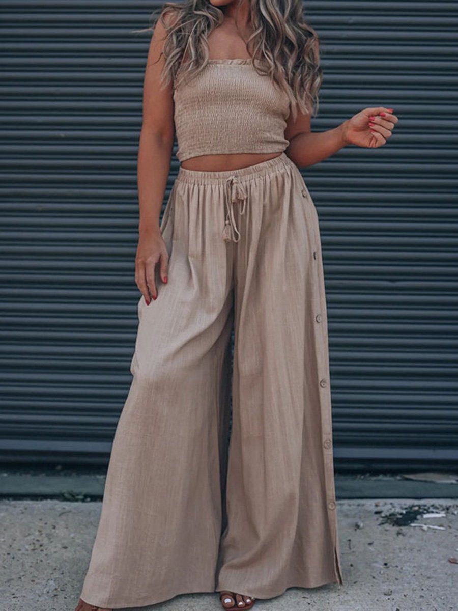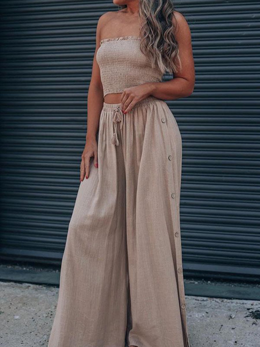 Solid Color Chest Wrap Top Wide Leg Pants Two-piece Set