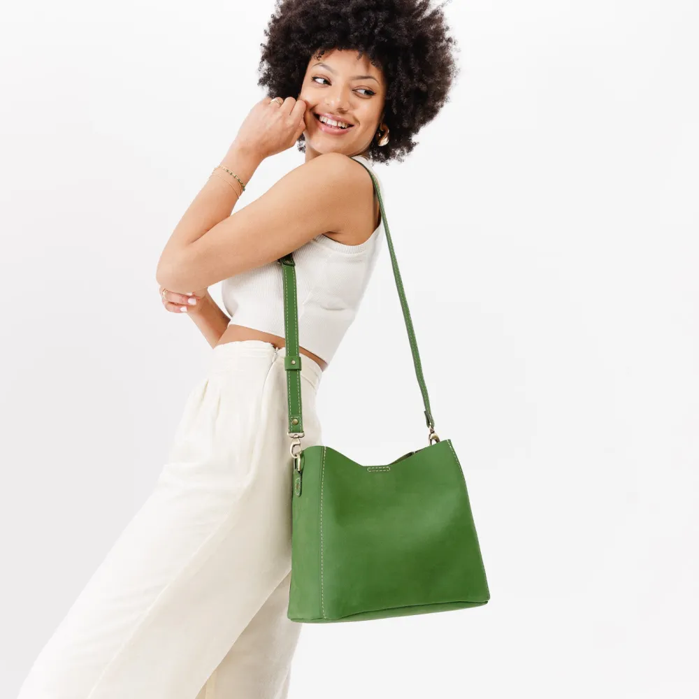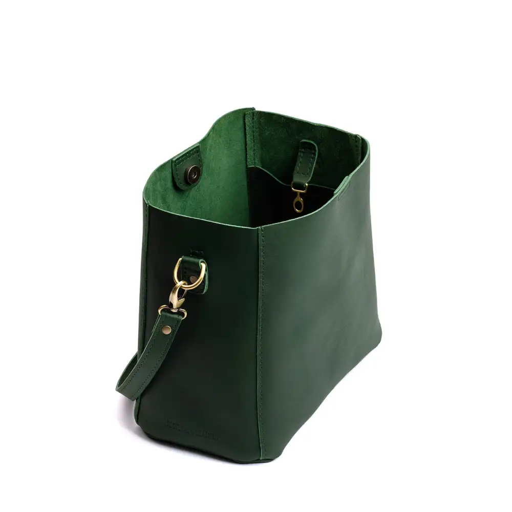 Our durable leather goods are unlined, featuring the natural suede side of the hide. Since fabric-lined bags inevitably discolor and tear with use, we chose to showcase the soft sueded underside of our hides, ensuring that your bag lasts a lifetime.