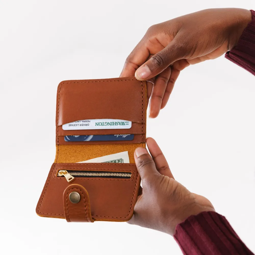 - Carry light in your pocket or your purse with this perfectly palm-sized wallet