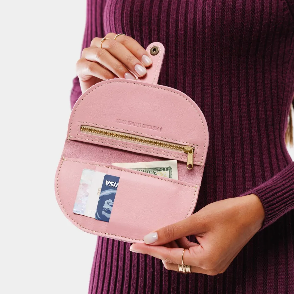 - This curved bi-fold wallet is a perfect bite-sized addition