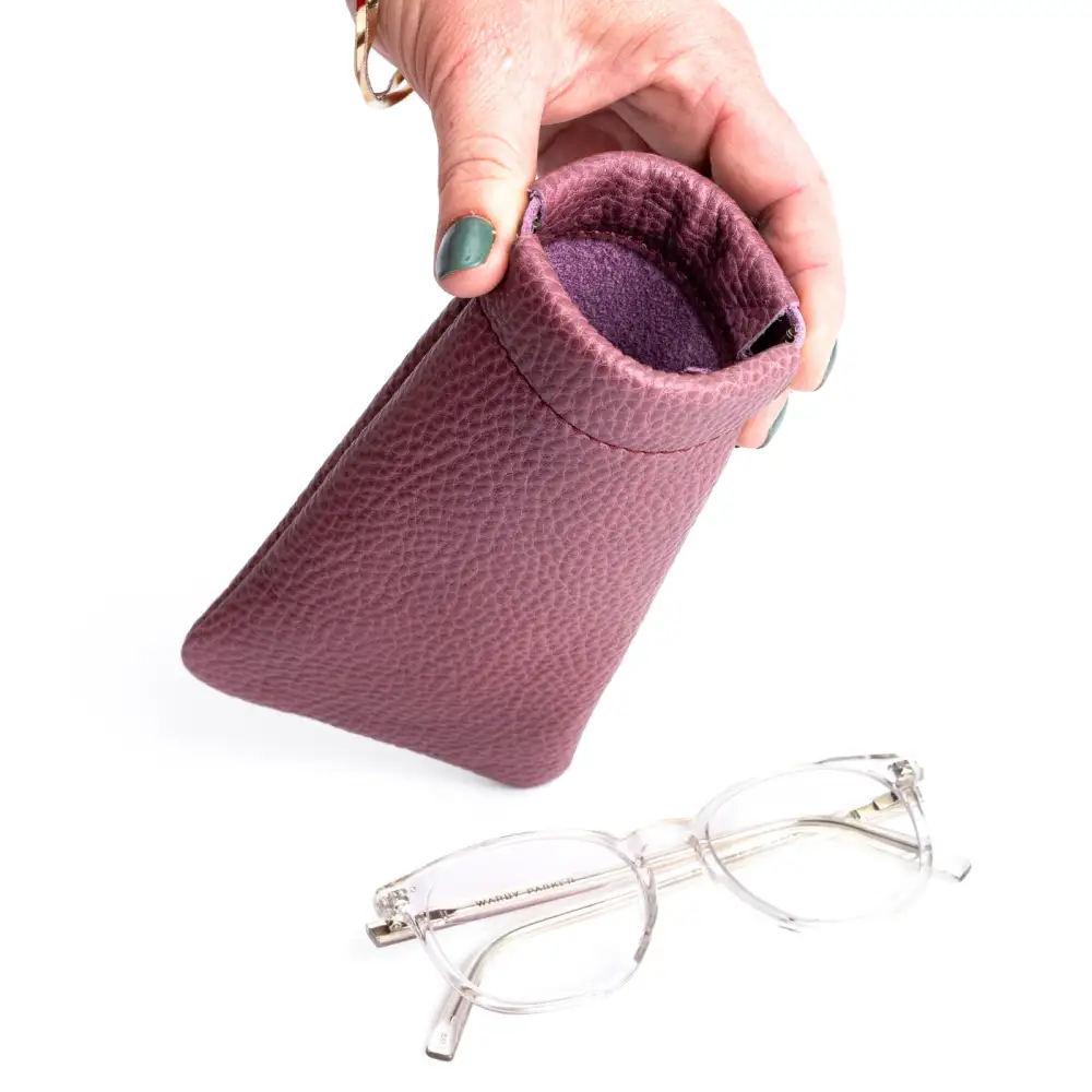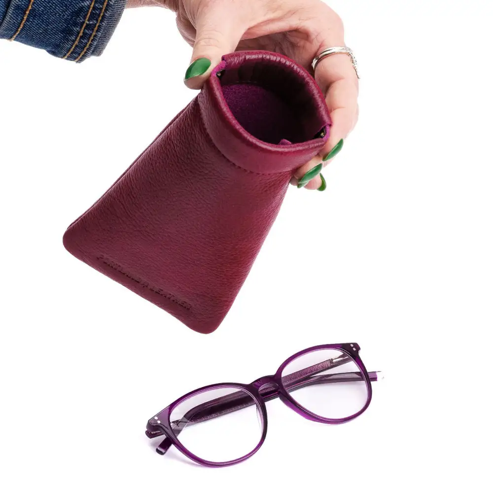 - Sleek design saves room in your bag, while durable full-grain leather keeps glasses protected