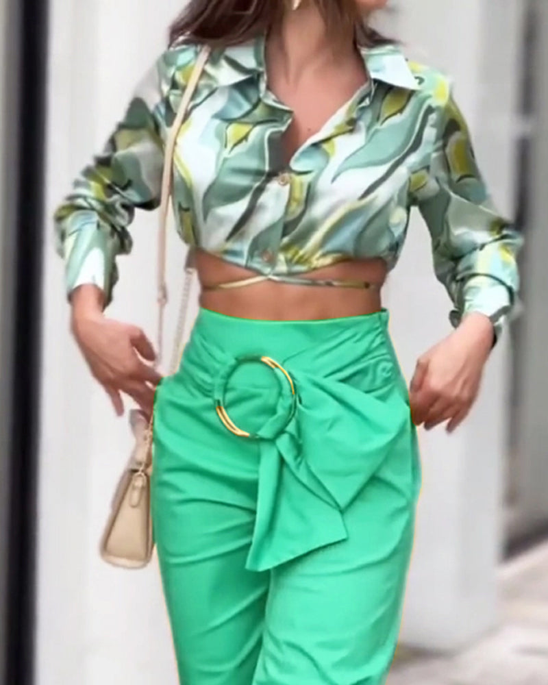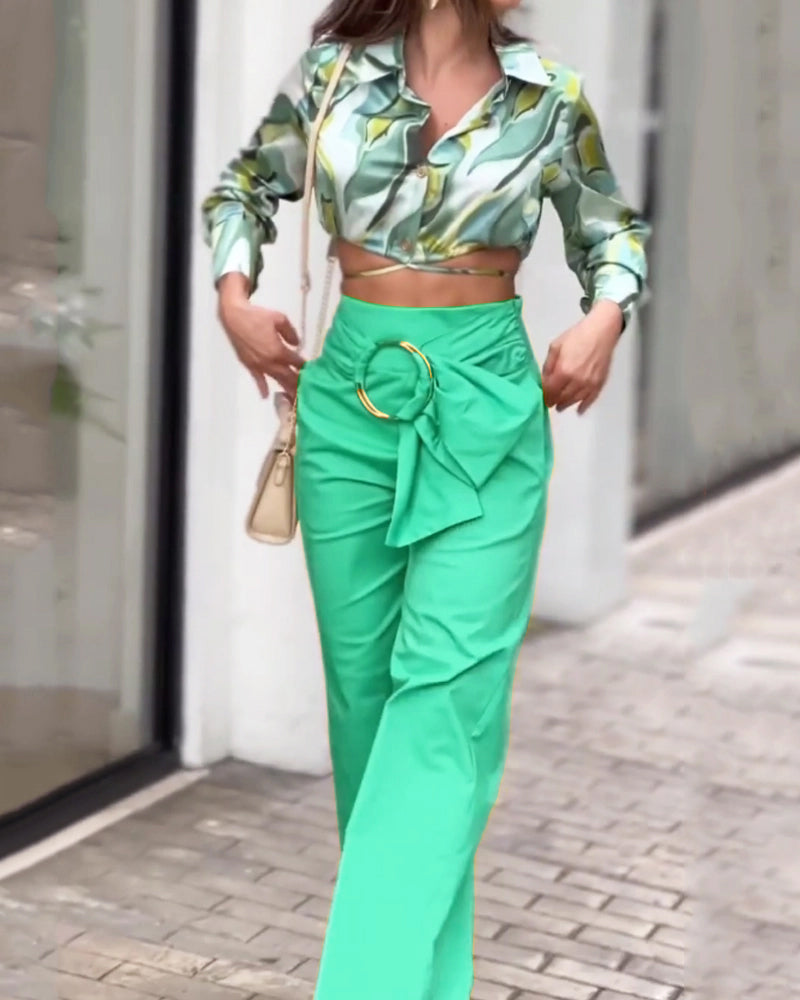 | Product Name | Casual Print Shirt & Pants Two-Piece Set |