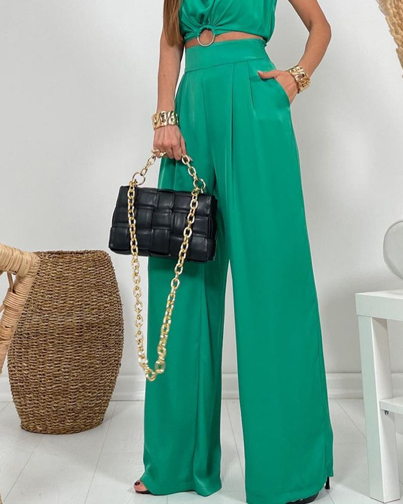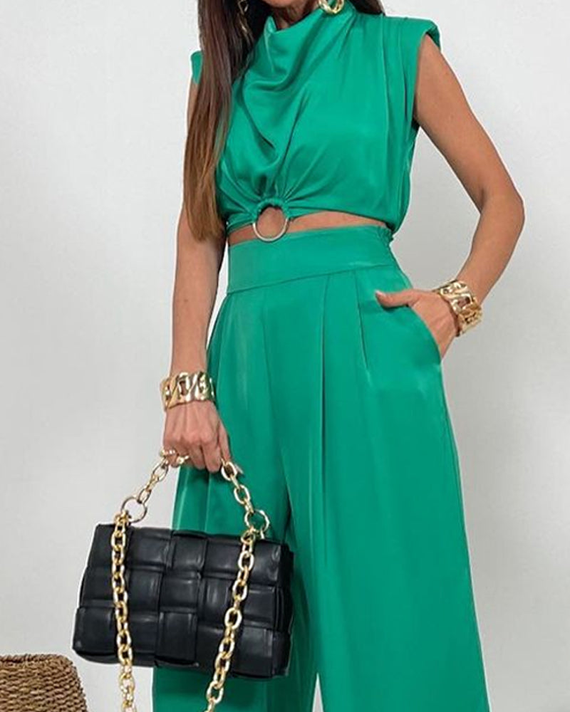| Product Name | Fashion Solid Color Tank Top & Pants Two Piece Set |