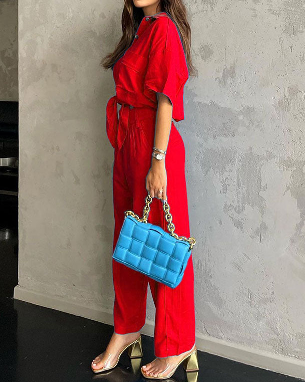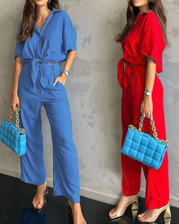 | Product Name | Short-sleeved loose top cotton linen wide-leg pants two-piece suit |