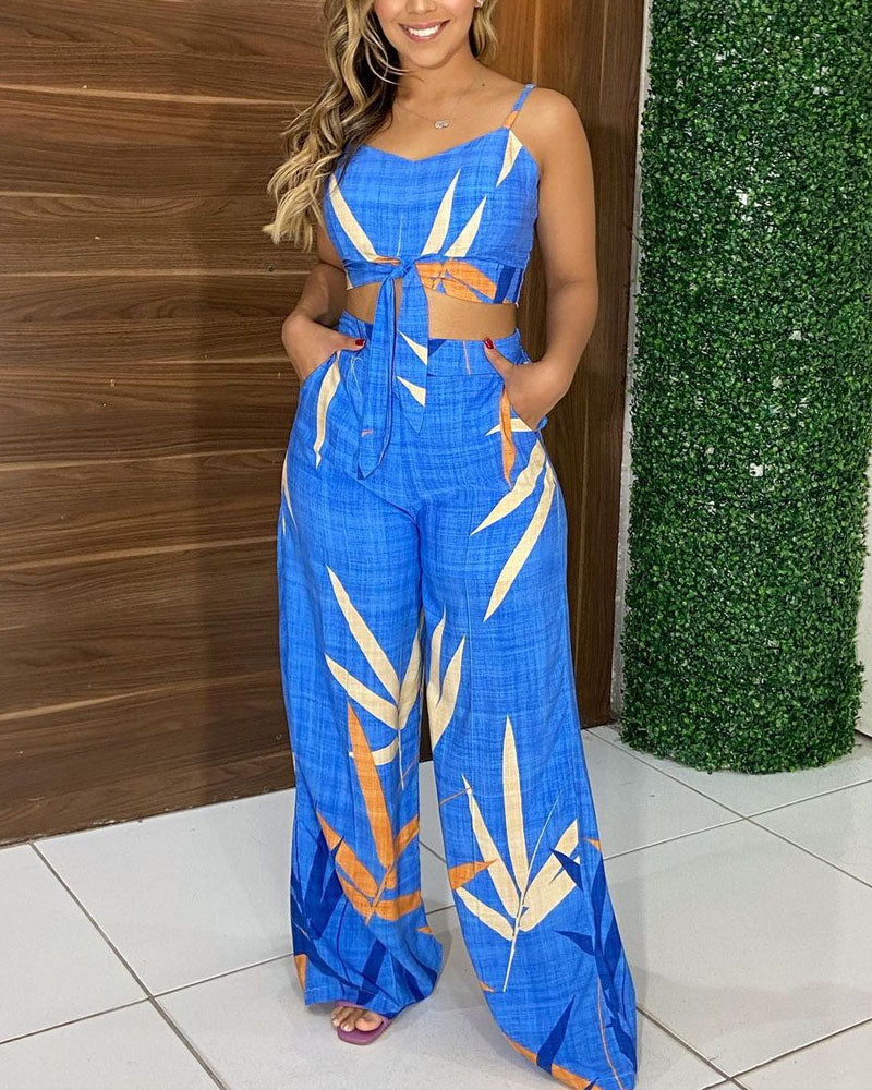 | Product Name | Tie-up Suspender Top & Printed Pants Two-piece Set |